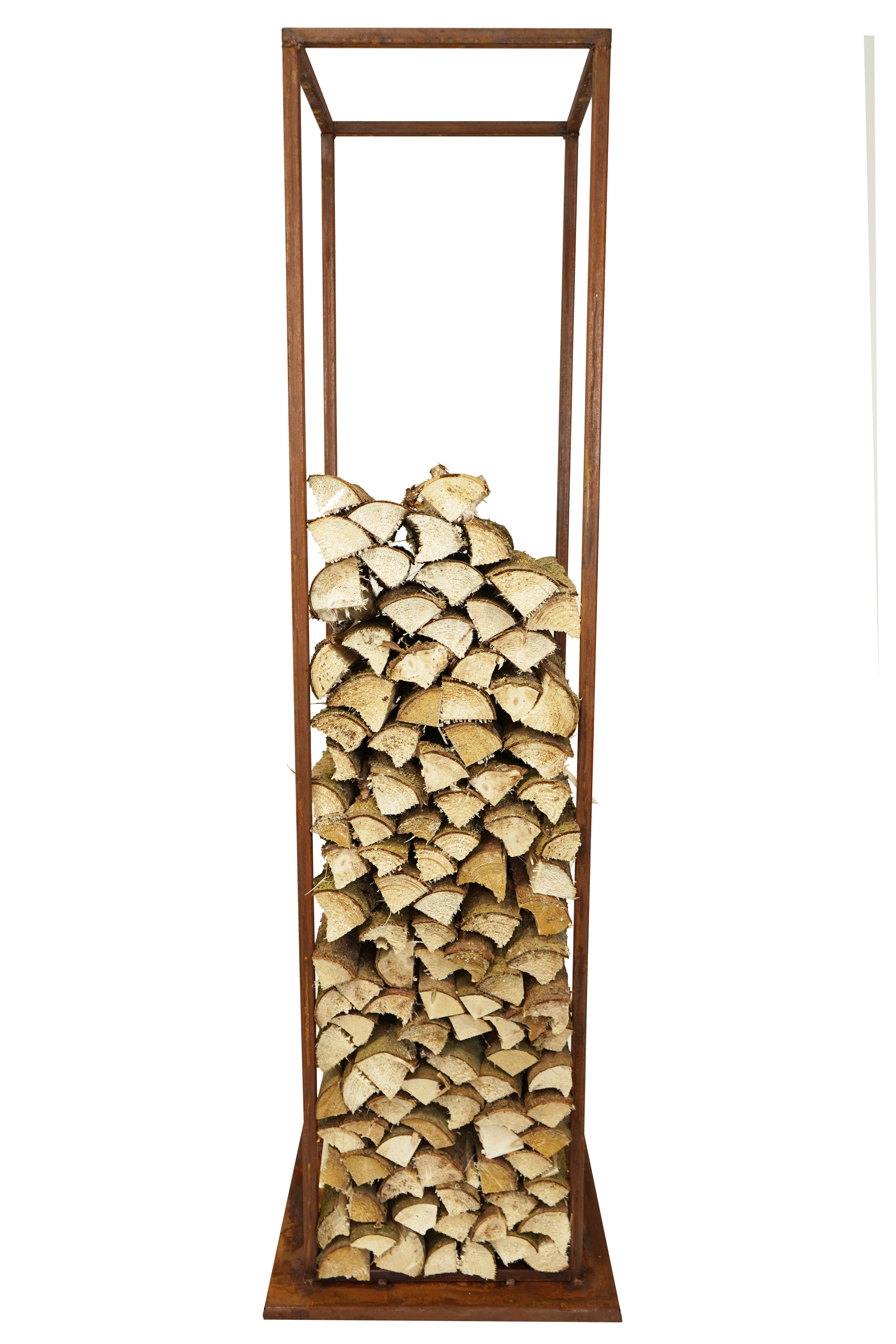 Die extra stabile Bodenplatte von 50 x 50 cm sorgt dabei für einen sicheren Stand, selbst wenn das Regal bis oben hin mit schweren Scheiten gefüllt ist.